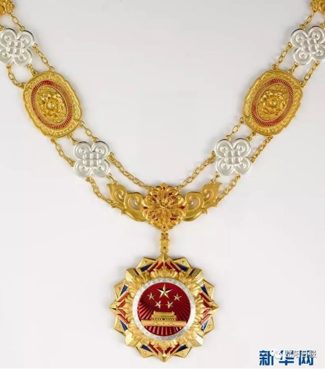 国家荣誉称号奖章以红色、金色为主色调,章体采用五星、天安门、牡丹、旗帜、光芒等元素,章链采用中国结、花卉等元素,整体使用冷压成型、花丝镶嵌、珐琅等工艺制作,象征国家荣誉称号获得者在各领域各行业作出的重大贡献,彰显示范引领作用,激励全国各族人民不忘初心、牢记使命,为实现中华民族伟大复兴的中国梦而不懈奋斗。