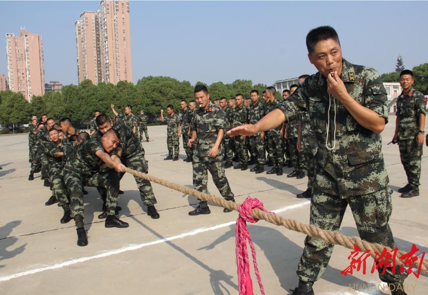 “加油,加油!身体拉低!”“加油,加油!重心要稳!”中秋节上午,武警湖南总队六中队三排八班班长崔东东伴着阵阵锣鼓声声嘶力竭的对着全班新兵加油呐喊。对!没错,他们现在正在进行拔河比赛,气势很足、方法到位、动作很帅,可是……最终这场比赛的结果还是很残酷——拔输了!