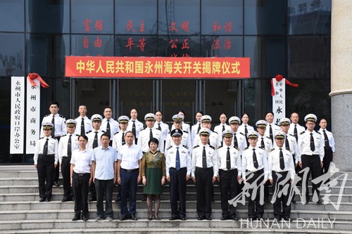 湖南日报·新湖南客户端9月19日讯(见习记者 黄柳英 通讯员 石巍)9月19日,中华人民共和国永州海关举行揭牌仪式。长沙海关、永州市直相关部门负责人,永州海关全体关员近50人参加了揭牌仪式。长沙海关缉私局局长焦德高和永州市人民政府副市长李旦梅为永州海关揭牌。
