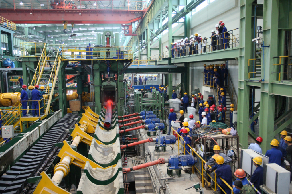 (2009年7月3日,全球最大口径周期式轧管机组——φ720皮尔格轧机在华菱衡钢全线热负荷试车成功)