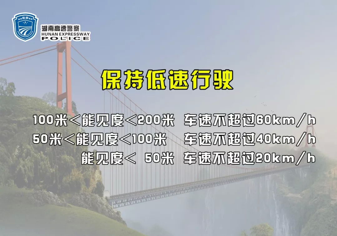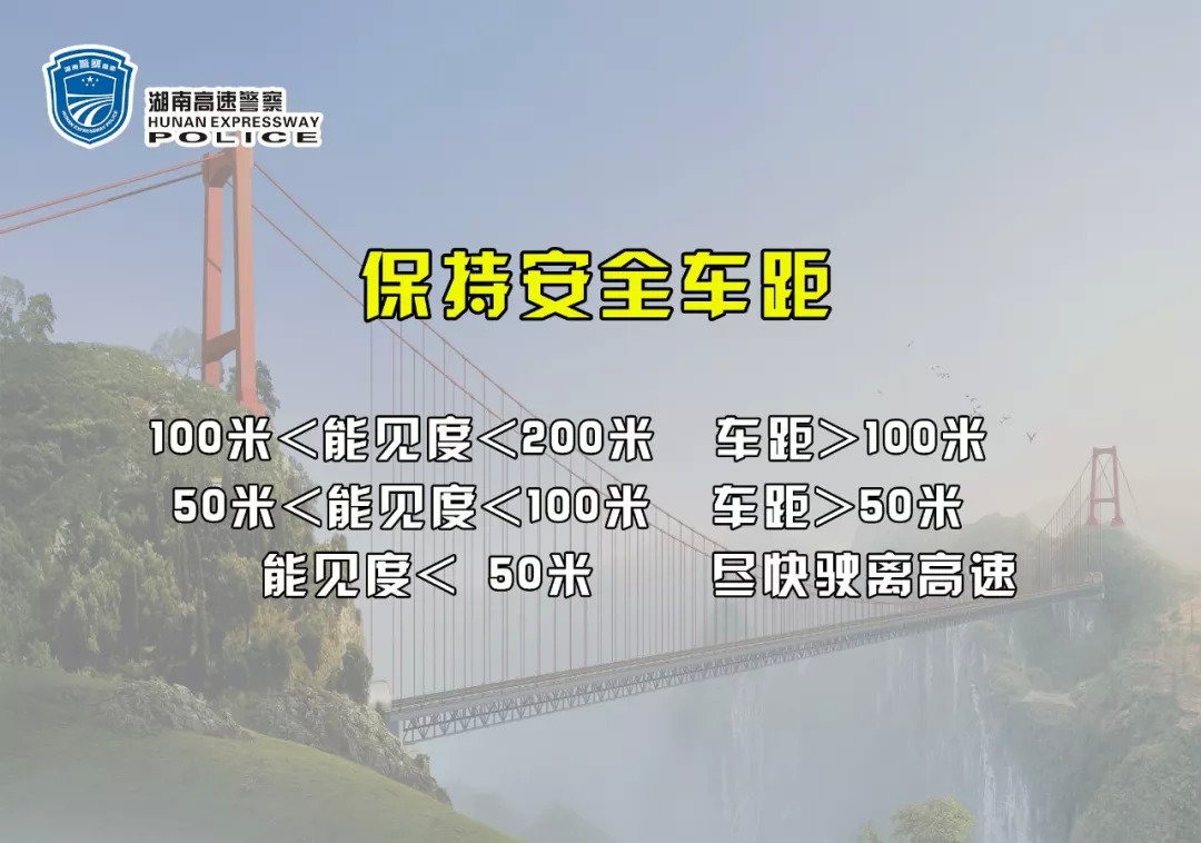 当能见度低于50米时,建议还在高速公路上的您在确保安全的前提下就近驶入服务区或驶离高速。
