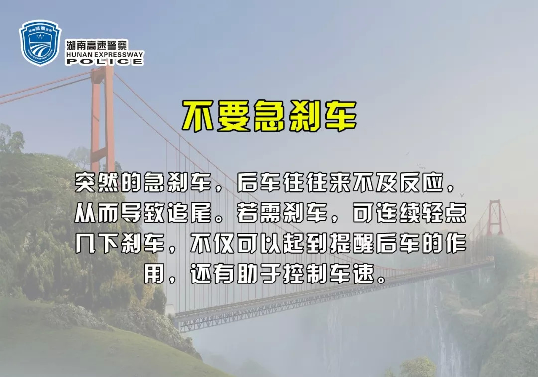 2、如果进入团雾区域后,一定不能就地停车,容易引发连续追尾事故。此时应当减速慢行,打开所有车灯(远光灯除外),与前车保持安全车距,尽量避免紧急制动与急打方向盘。