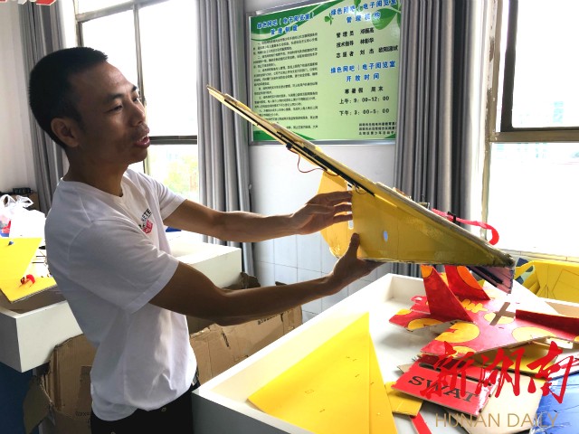 ▲雷红全展示学生航模