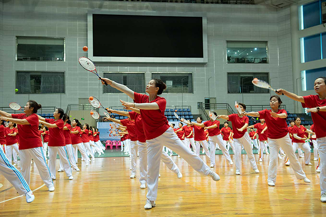 比赛分集体自编套路和集体自选套路两个曲目,现场中,大家高接低抛、姿势多样、风采尽显,充分展示了新时代老年人健康向上、乐观进取的精神风貌,传递了养成健身习惯、享受健康生活的理念。