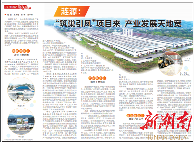 转变一:以做大做强三一中源为抓手,实现了先进装备制造产业由单打独斗到链式发展的转变。涟源紧紧抓住三一集团将压路机、平地机生产基地落户涟源的战略机遇,着力做好三一路机先进装备产业100亿产业文章。2018年7月26日第一台压路机正式下线,9月1日量产,三一中源正式进入整机生产时代。2019年全面布局智能制造产业线安装,产能实现新的突破,预计2019年销售超20亿元,2020年销售超40亿元。现正抓紧建设相关配套产业园,在华德、创安配套建设三一配套企业标准化厂房,在六亩塘镇建设三一配套天工工业园,在七星街建设三一配套洪源工业园,在渡头塘建设三一配套循环工业园。目前,已引进了百斯特、柳州金盾、众盛机械、张家口海特钢管、湖南托普斯新材料、株洲方远航空铸造等6家企业,该市计划利用3-5年打造以三一路机为龙头的先进装备制造100亿产业。