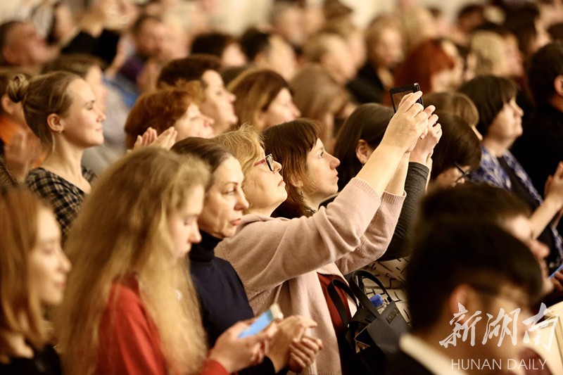 在全场观众持续的掌声与欢呼声中,两国乐团三度返场,加演了中国名曲《茉莉花》、代表湖湘文化的《浏阳河》和表达中国少数民族热烈庆祝情景的《北京喜讯到边寨》。美妙的音乐,让中俄两国人民友谊更深。