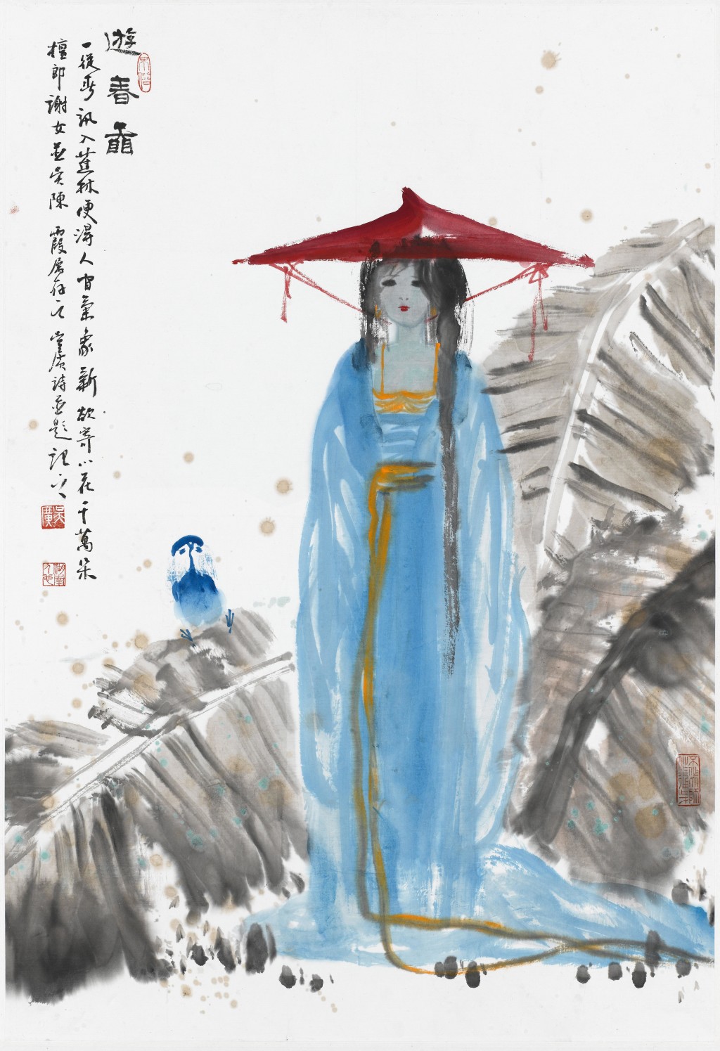 吴广泼墨人物画《游春图》2013创作69X46CM