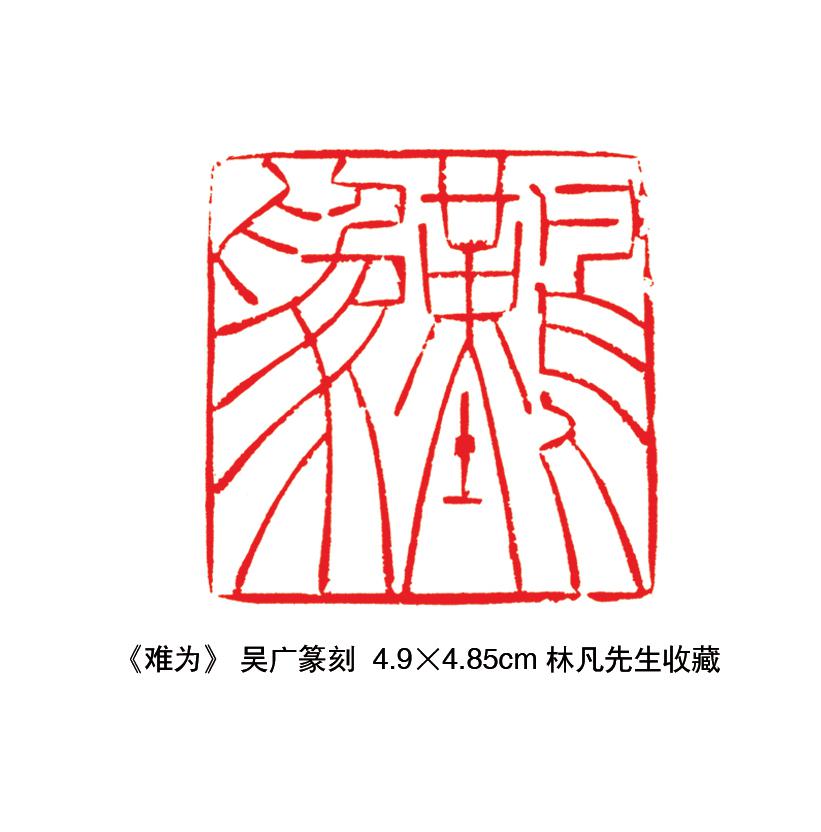 近年来,吴广先后为一批社会艺术界名流所治印章,均有可圈可点之处。前年,我嘱其治印一批,每每钤印于卷前画侧,赏心悦目,妙不可言。总之,吴广的书法篆刻,以诗文为魂魄,以笔刀为形质,以音乐为灵性,开拓了一方属于自己艺术天地的古雅圣殿。