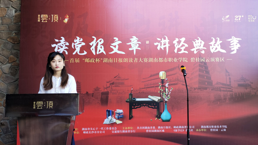 10月29日上午,他们在湖南都市职业学院五年制大专部60多个班级3000多名同学中崭露头角;10月31日,由碧桂园和交通银行支持,《放学后》与《科教新报》联合执行的首届“邮政杯”湖南日报朗读者大赛,他们走进了碧桂园·云顶赛区参加选拔赛。