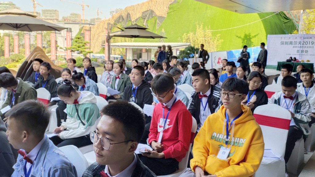 秋日艳阳高照,同学们早早来到比赛现场,室内的售楼部大厅、茶室、洗手间旁,室外的草坪旁、旗道上,随处可见他们认真吟诵的身影,或低声吟唱,或高声朗读,或脱稿背诵……