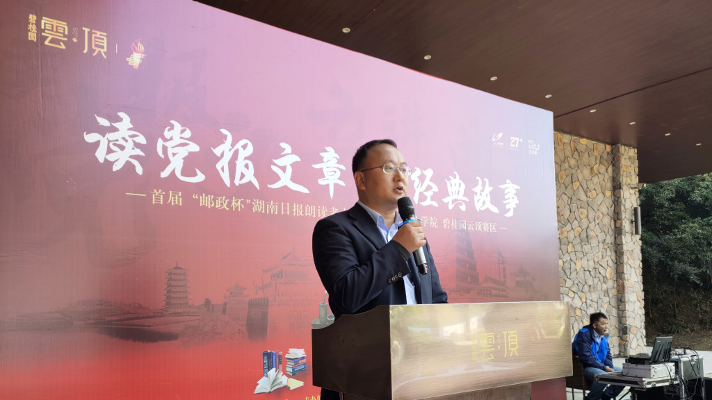 九点整,随着主持人龙昱君甜美温润的嗓音响起,活动就此拉开了序幕。在热烈的掌声中,碧桂园·云顶的营销经理梁锦业先生致辞,“党报是党和人民联系的重要纽带,让当代少年开拓视野,传承祖国优秀文化;很高兴今天我们能在云顶这片自然滋养的土地上,进行一场‘学而思’的精神洗礼;很感动都市学院的师生、家长、邮政公司的领导、朗读者组委会能齐聚一堂,为云顶增色添彩……”