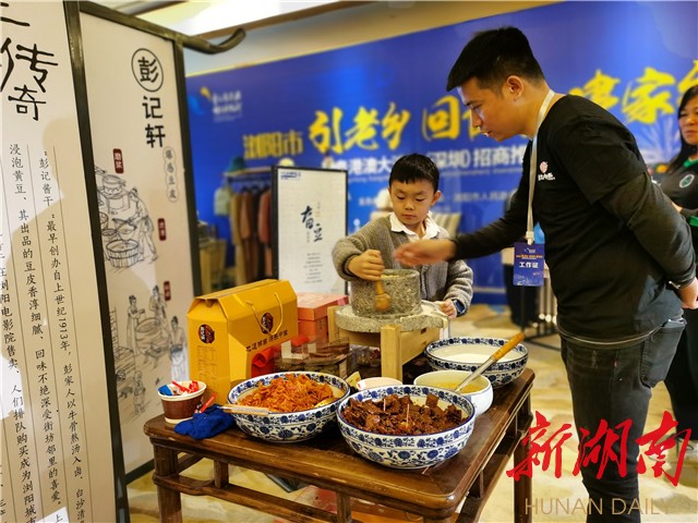 (招商推荐会现场,浏阳夏布、浏阳蒸菜等浏阳非遗项目现场推介展示。)