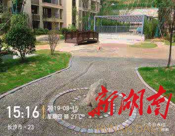 (记者探访“人工湖”所在地长沙北辰中央公园小区。)