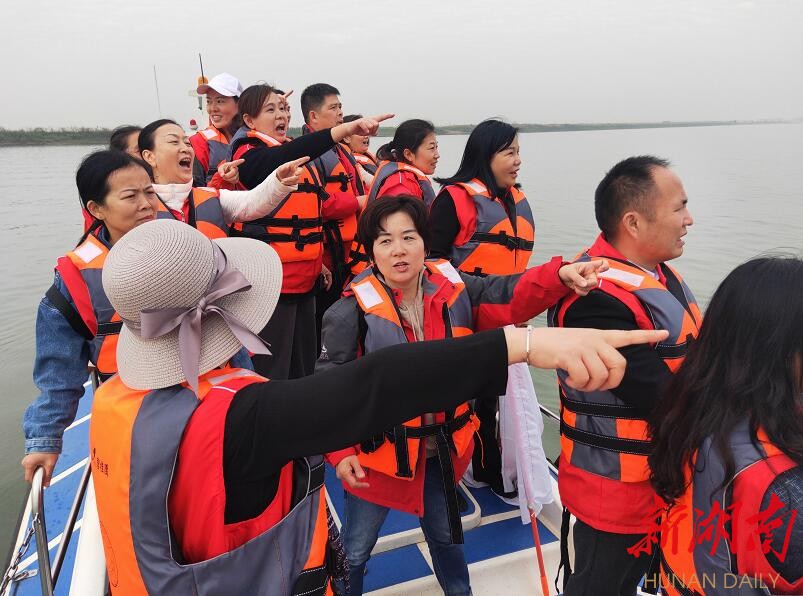 “今天把姐妹们召集起来下洞庭湖、长江巡逻,近距离地了解江豚、保护江豚,才知道江豚保护的重要性,感受到徐会长关注自然的大爱情怀。作为媒体人,锲而不舍地向社会各界不断地宣传环保,真的了不起。现在觉得我们洞庭湖的江豚很可爱,让我们更爱大岳阳。”杨景副主席突发感慨地向大家呼吁。