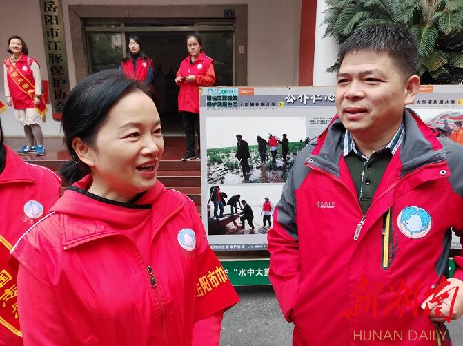 市巾帼志愿者协会会长陈静琳摇旗呐喊道:“我们要一起唤起大家对江豚的保护,学会爱护它。咱们岳阳人要做好岳阳的事情。”