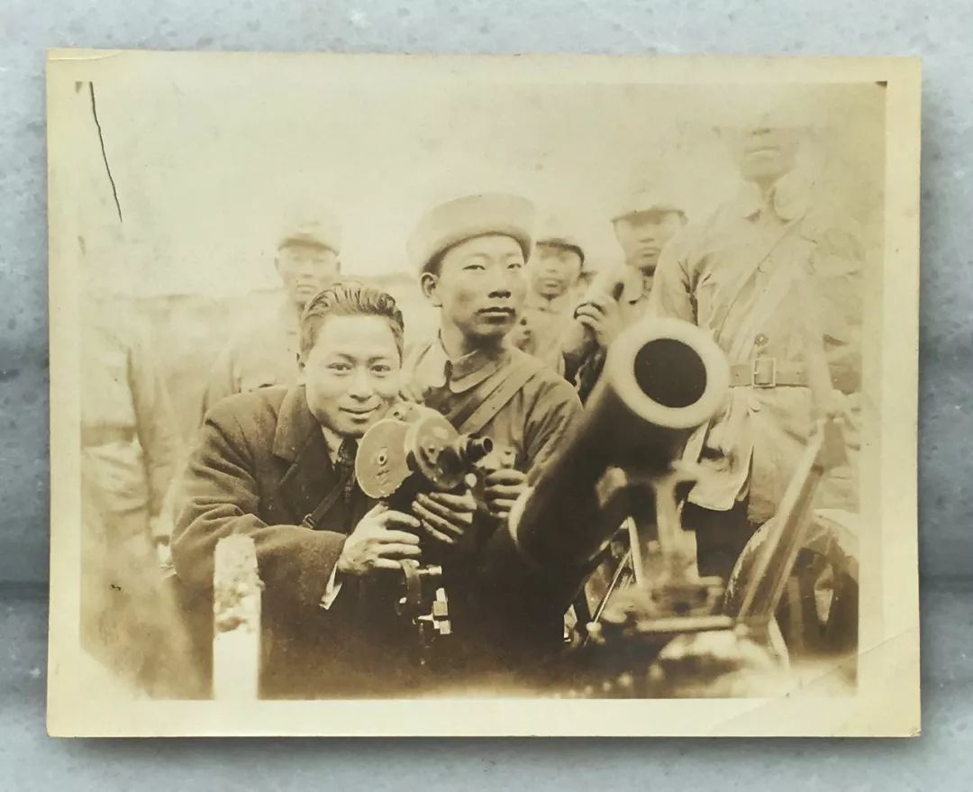 “八一三事变”期间,王小亭手持摄像机与中国士兵合影原件