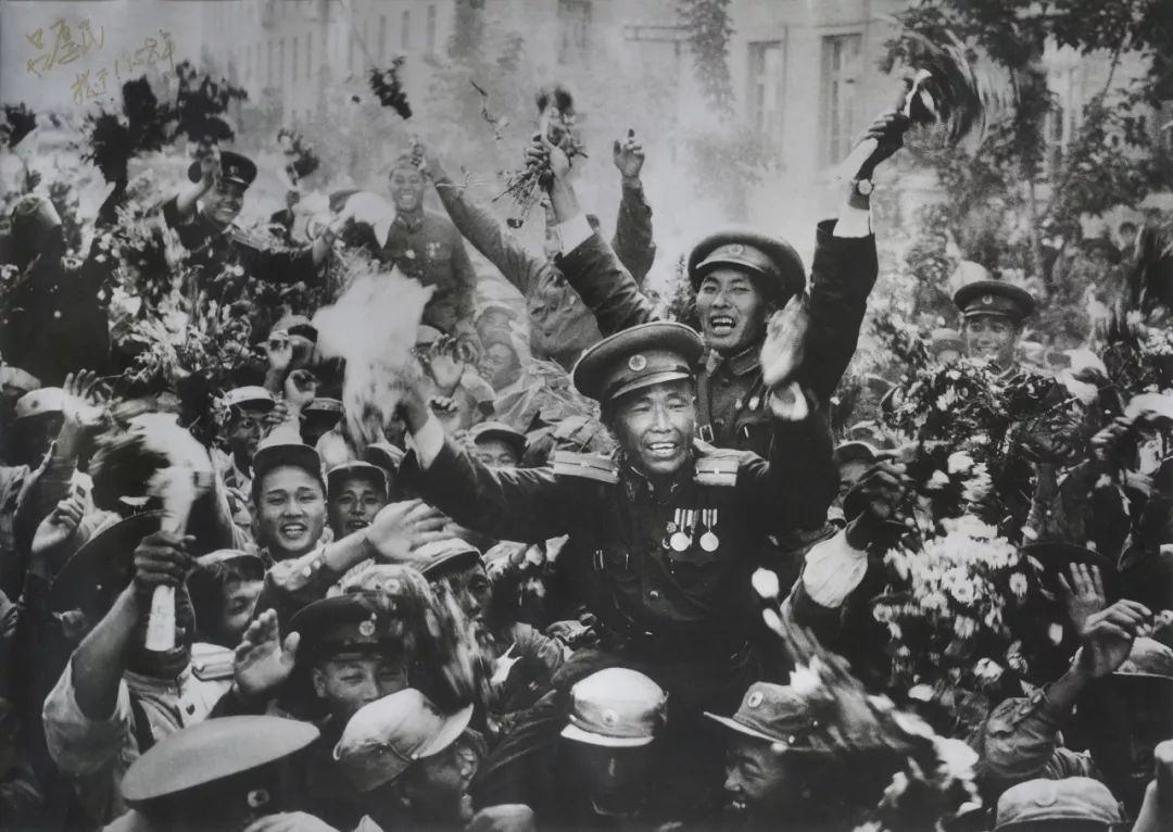 《欢送志愿军回国》签名版作品,1958年,朝鲜,吕厚民摄