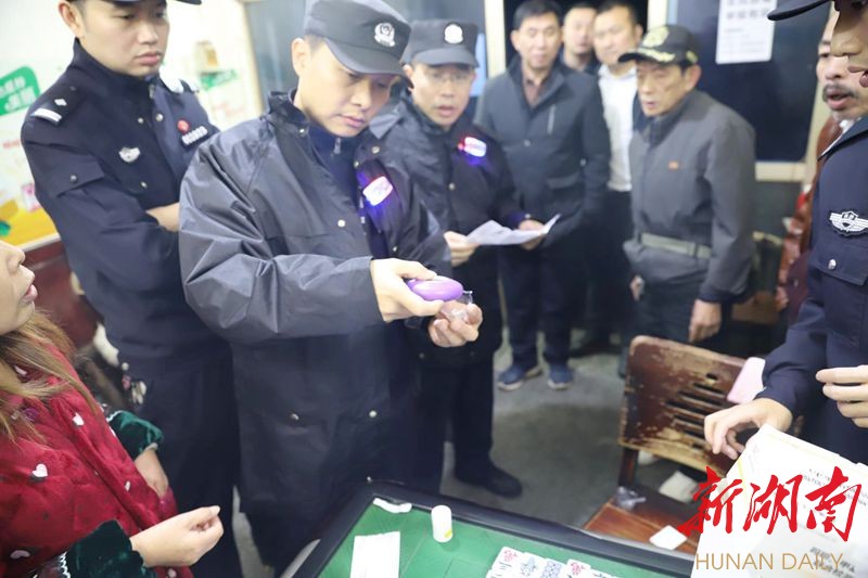 △民警在麻将馆进行毒品清查。(警方供图)