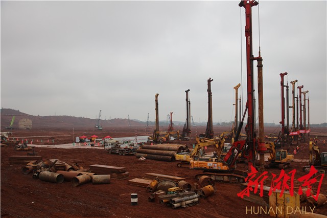 (浏阳经开区惠科项目建设工地桩基林立。张迪 摄)