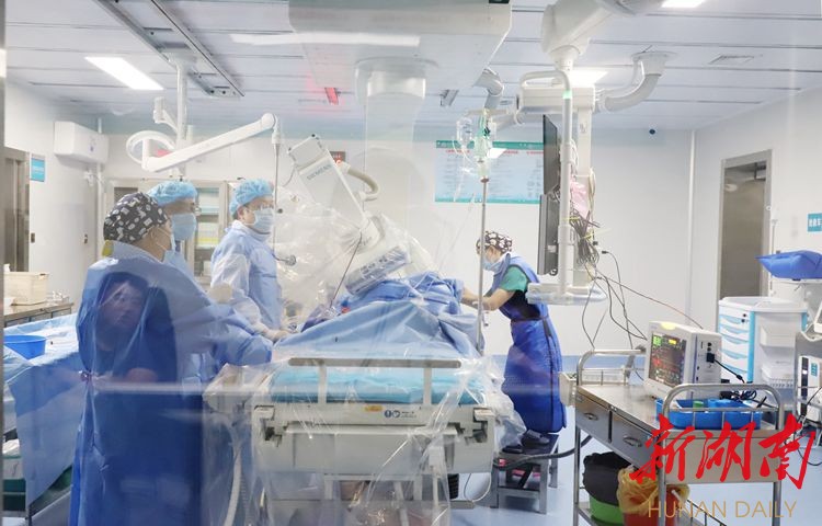 介入治疗中心,拥有实力强大的医护团队,配备了目前国际最先进的德国西门子全数字化血管造影成像系统,自今年9月10日成立以来,已成功完成手术120多台次。“许多高风险、高难度的介入手术均能在这安全、顺利地开展,并达到三甲医院‘同质’水平。”科室主任欧昌元介绍,近日一名急危重心肌梗死患者入院时血压80/52mmHg,血氧饱和度81%,心电图提示急性广泛前壁心肌梗死。“我们不到40分钟就为他开通了血管,使他转危为安。”