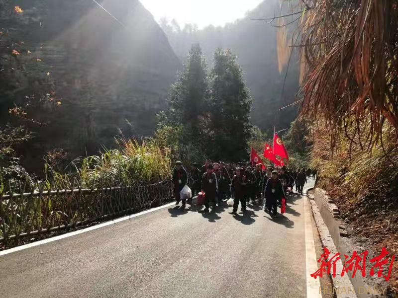 湖南日报·新湖南客户端12月15日讯(通讯员 赖鹏 龚茶林)12月13日清晨,曙光照耀下的原中国工农红军第五军驻地平江县长寿镇仙姑岩群山肃穆,山路上走来一支由国旗引领的中学生队伍,这是长寿镇维夏中学部分师生赴仙姑岩红军营重走当年红军路,接受革命传统教育。