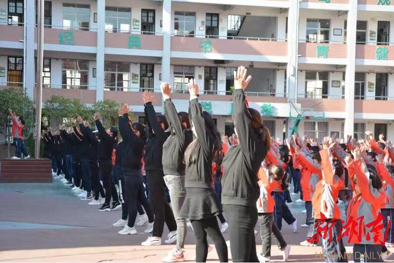 湖南日报·新湖南客户端12月12日讯(通讯员 龚茶林 吴岳松)腊梅凌寒放,傲菊斗霜开。12月11日,平江县教育局2019年度中小学大课间验收组曹广宇一行来到长寿镇,长寿学区主任冯练军全程陪同。长寿镇中心学校1400余名师生以饱满的精神、昂扬的姿态,集体迎接上级检阅,充分展现了该校教师出色的团队协作能力和良好的精神风貌。