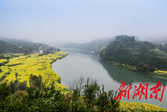 “岁月静好春水流,醉美潭溪画中游。油菜花田香阵阵,水墨丹青山悠悠。”