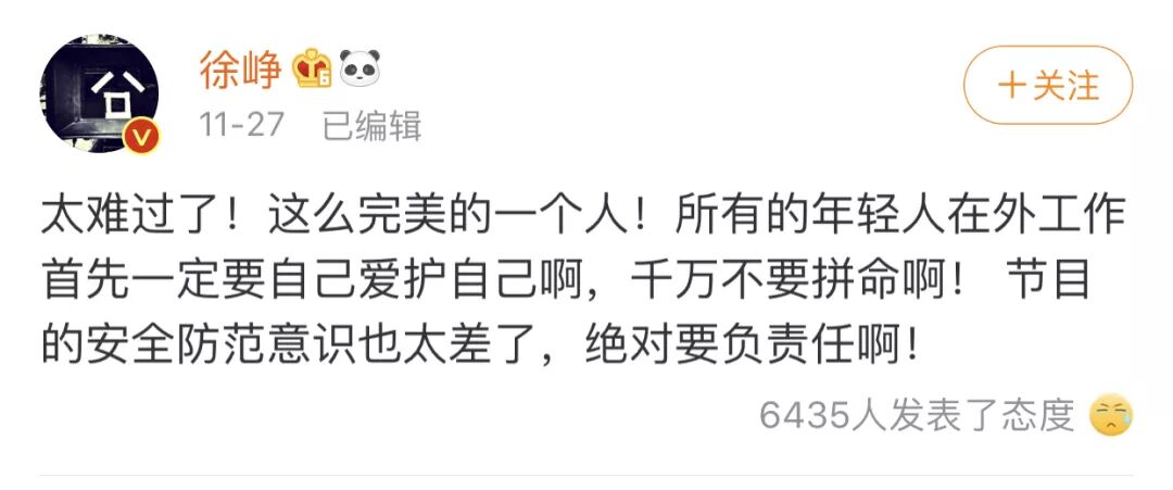 同日,很多明星都发文悼念,并斥责节目组,需要担负责任。