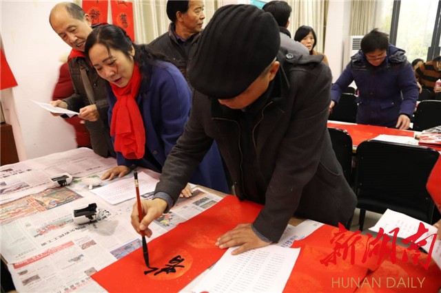湖南日报·新湖南客户端1月5日讯(通讯员 章迎春)无联不成春,有联春更浓。近日,“我们的中国梦·文化进万家”——长沙岳麓印社迎春送福写春联小分队走进岳麓区西湖街道咸嘉湖社区,免费为居民书写、发放春联,送上新春祝福。
