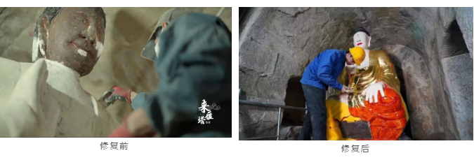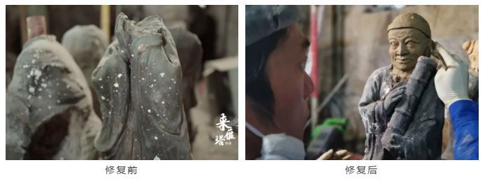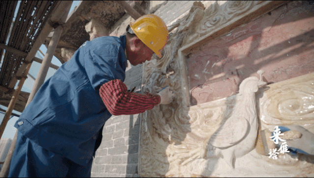 古建修缮团队负责人说:“现代机械速成的东西没有历史沉淀感,在工艺上我们要求使用传统工艺,雕塑和灰塑都是纯手工打造,谨遵原形制、原工艺、原材料原则,这是对历史、对古代匠人的隔空致敬。”