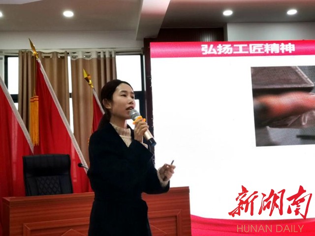 沙坪是湘绣之乡,在湘绣之乡聊工匠精神,非常应景的。开福区委党校老师胡蓉以“匠心筑梦”为题,用朴实的语言、真挚的情感、生动的事例,让现场观众对工匠精神的内涵有了更加深切的感受,鼓励居民们“梦想都是奋斗出来的”。