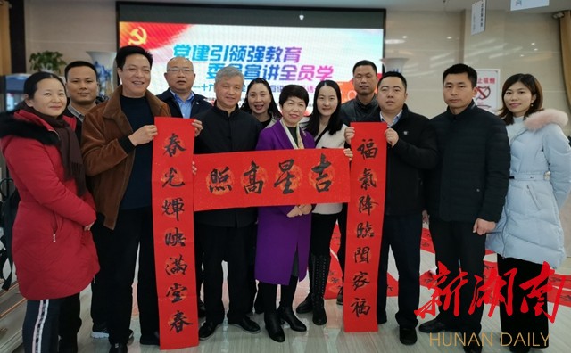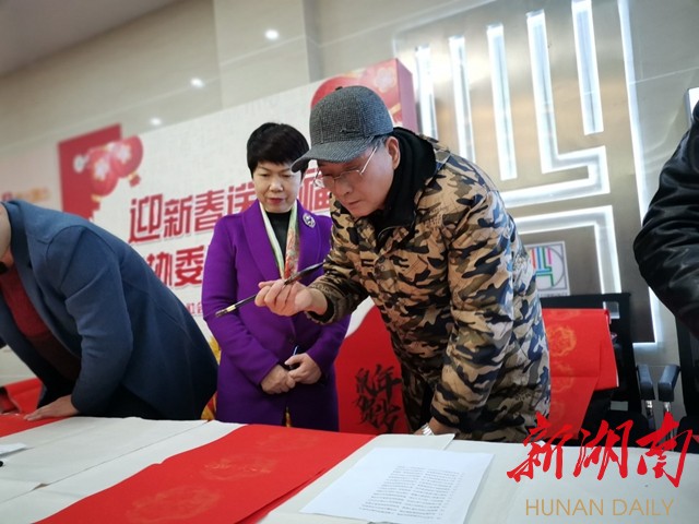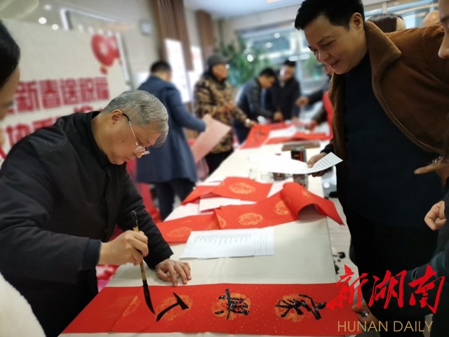 宣讲会结束后,开福区政协在活动现场专门设置了十九届四中全会精神宣讲台、为居民答疑解惑的法律咨询台。并在沙坪老街的一楼大厅开展“迎新春送祝福”政协委员送春联活动,政协委员们挥毫泼墨,写春联免费赠与辖区居民。刚刚写好的春联,黒黑的墨迹还未干,就被早已等在一旁的居民们拿走。