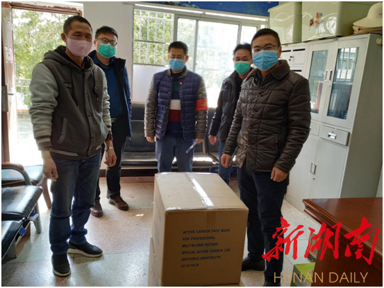 桃源县沙坪镇芦花社区杏春堂药店老板陈祖耀向沙坪镇人民政府捐赠口罩。