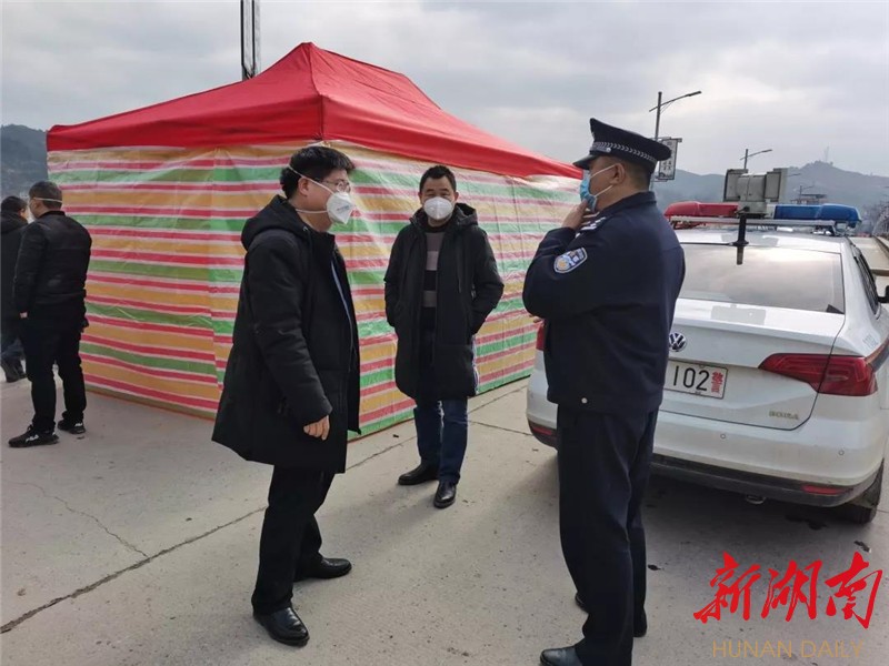 1月27日,第1监督组在湘鄂情大桥卡点督查(杨艳琼 摄)