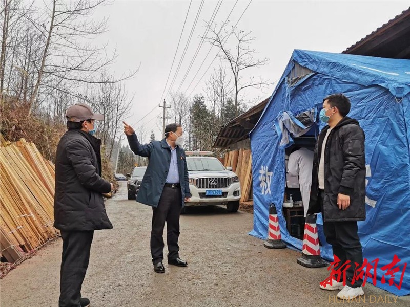 1月28日,龙儒文在大安乡督查疫情防控工作(彭官清 摄)