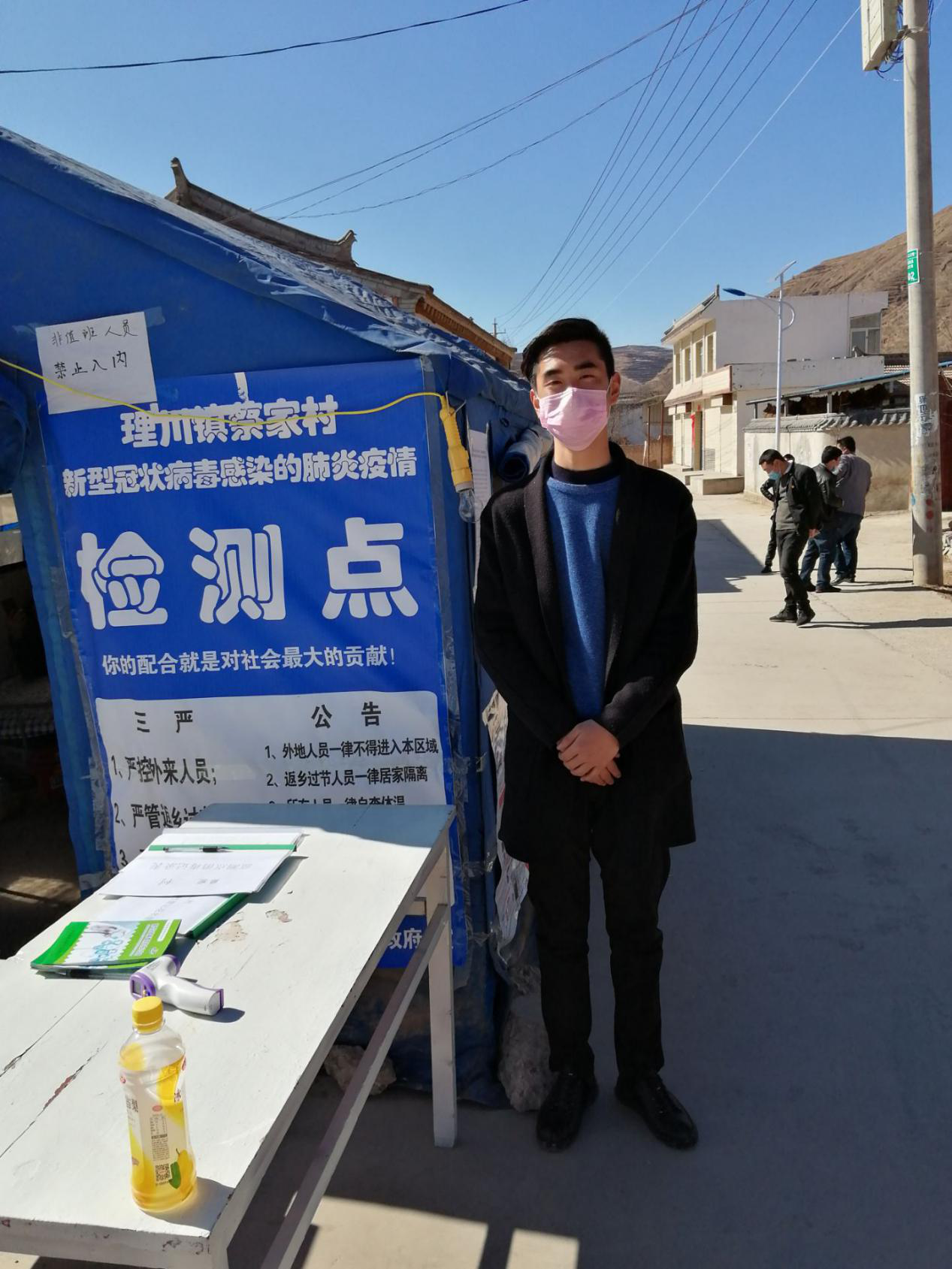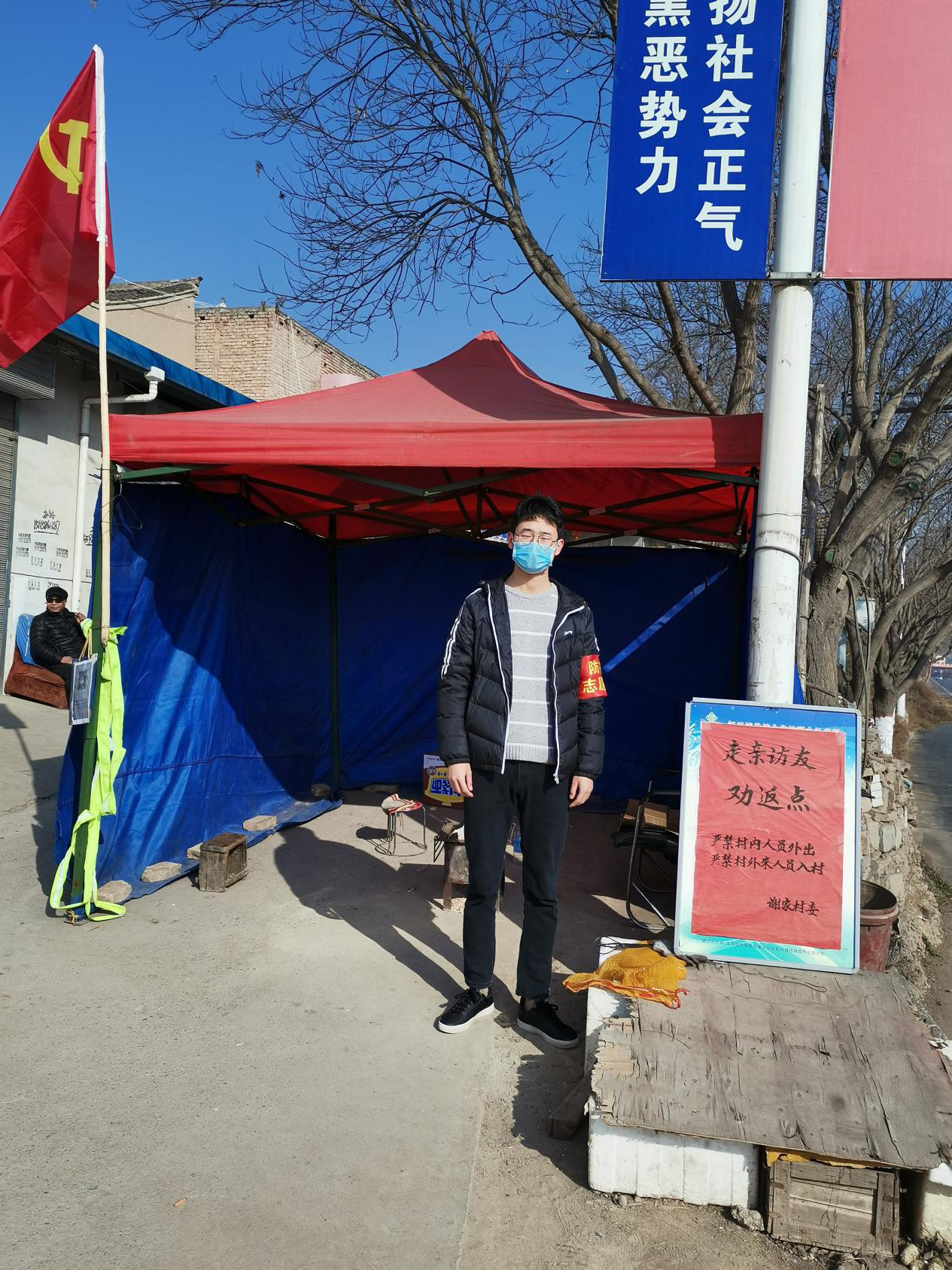 王倩倩,2017级美术学专业学生,河北省保定市曲阳县文德镇南洪德村人,她说:“村委会发布‘招募疫情防控工作志愿者’信息后,我第一个提交了报名表。疫情防控、人人有责,作为家乡的一份子,作为一名当代青年大学生,作为一名预备党员,我有责任和义务为抗击疫情贡献力量。”