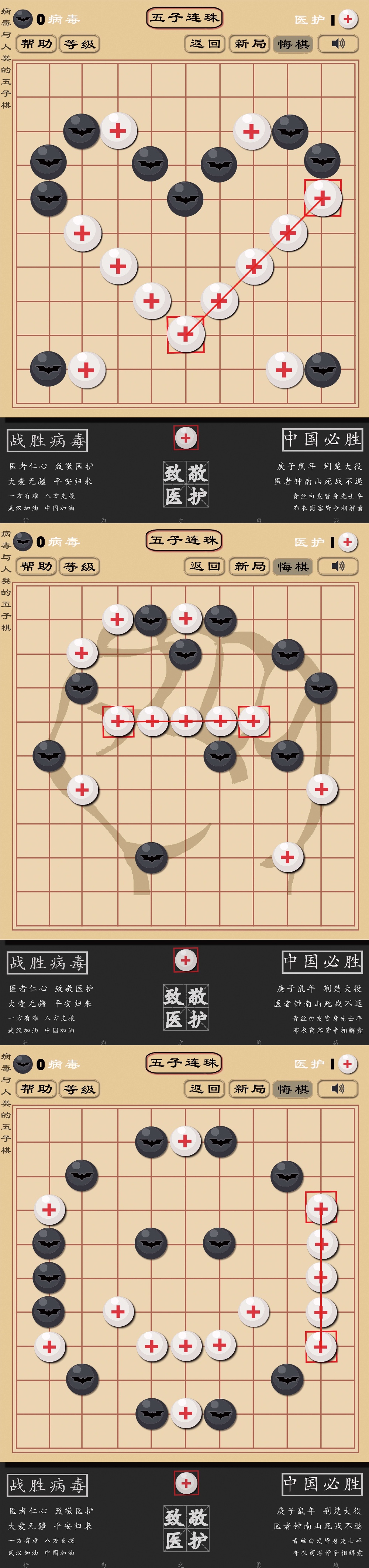 作品说明:用五子棋的黑白棋分别代表病毒与医护,使用心形,必胜拳头,笑脸代表对医护的信心与敬佩,致敬医护!武汉加油,中国必胜!