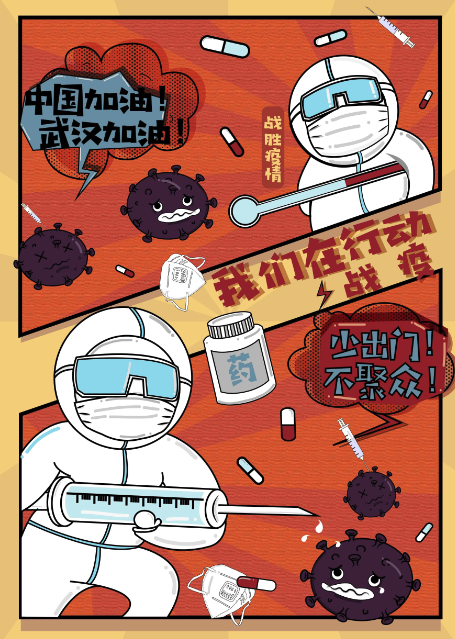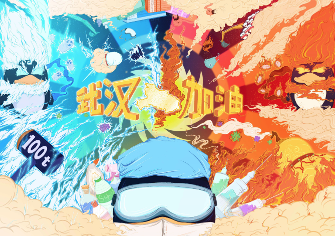 作品说明:为了响应国家号召与病毒作斗争,通过插画的形式来表现出医护人员在前线奋斗的辛苦与不易,同时我们自己也要响应国家号召,相信靠我们的微薄之力终将战胜病毒,2020年一定是先苦后甜!