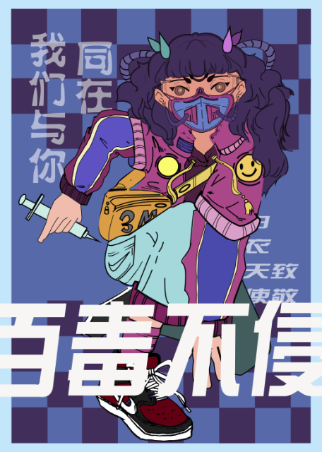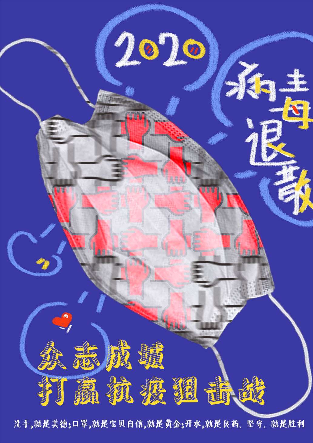作品说明:新年伊始,肺炎疫情笼罩在每个中国人身上,为防制疫情的扩大,口罩成为每个人的出门必备。该海报就以口罩为主体,通过涂鸦的方式传播万众一心,众志成城抗击疫情的决心和信心,坚信通过国家、医生和坚守在一线的工作人员以及我们每一个人的努力,终究会度过这次战疫,迎来春天。