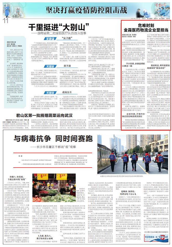 疫情发生,金霞经开区紧急调度园内国控湖南、湖南医药、九州通、瑞康医药、海王医药、金六谷、山河医药等多家医药物流企业,日夜奋战,调配了大量医疗物资。