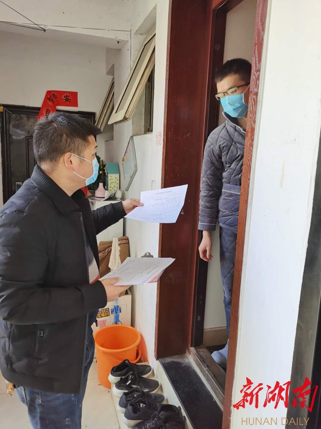 新湖南客户端2月18日讯(通讯员 宋畅)“走,我们一起去24栋收昨晚发放的排查表吧。”2020年2月18日一大早,在长沙市雨花区侯家塘街道韶山路社区内,雨花区委组织部的联点干部史炬辉招呼着同来的肖安妮和李英畅,开始了他们一天的战“疫”工作。