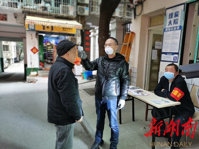新湖南客户端2月5日讯(通讯员 杨瑞琪 罗灵子)“你好,请配合登记,并量一下体温。”“刘爹爹,没事就不要出门啦。”“张娭毑,出门一定要戴口罩啊!”自长沙市芙蓉区韭菜园街道桐荫里社区开展防控防疫工作以来,辖区的煤炭大院宿舍门口每天都会上演这样的场景。