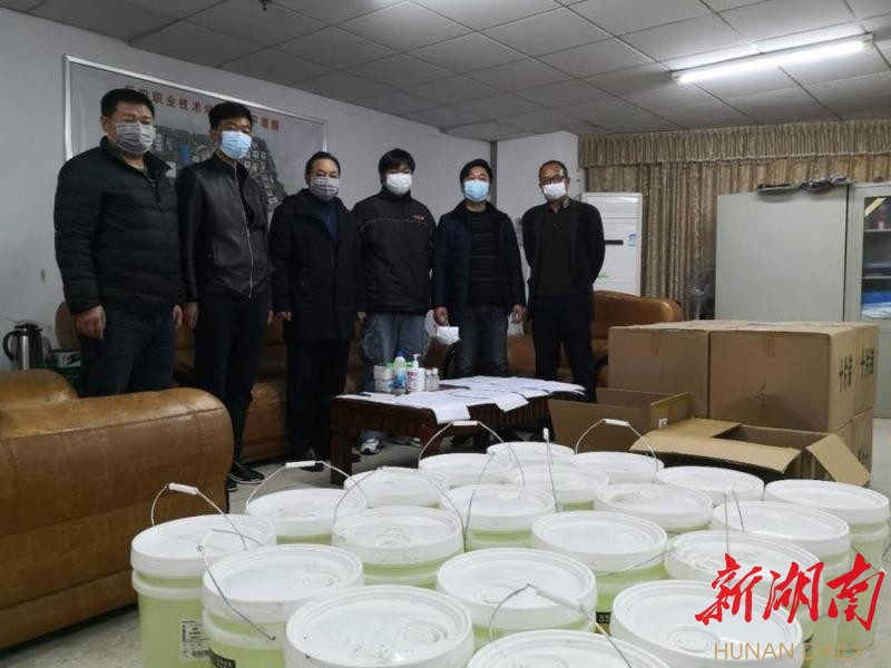 面对此次疫情,岳阳职院众志成城,科学、系统、全面开展学院防疫工作。随着战疫的深入,职院防疫物资供需紧张。刘水兵获悉此情后,不到5天就从深圳紧急购买调运了20桶、共800斤、价值一万多元的84消毒液,及时送到学院。他说:“感谢学院对孩子的培养,能够为学院的防疫工作做点事,心里踏实。”