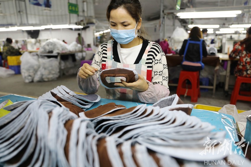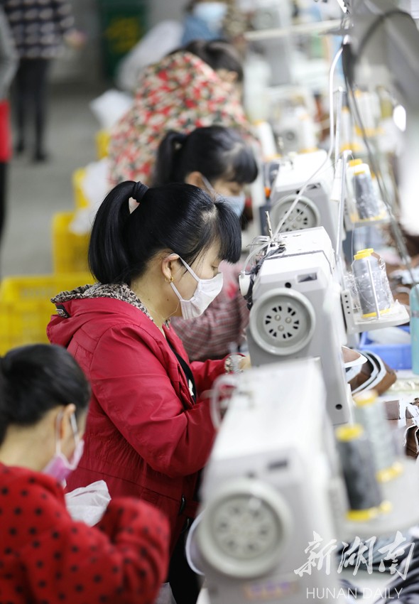 2月27日,道县西洲街道石厨头社区辉益鞋业“扶贫车间”,工人在忙碌作业。连日来,该县在做好新冠肺炎疫情防控工作的同时,积极推动市内扶贫车间复工复产。截至目前,道县33家扶贫车间复工复产率已达100%。何红福 熊春明 摄影报道