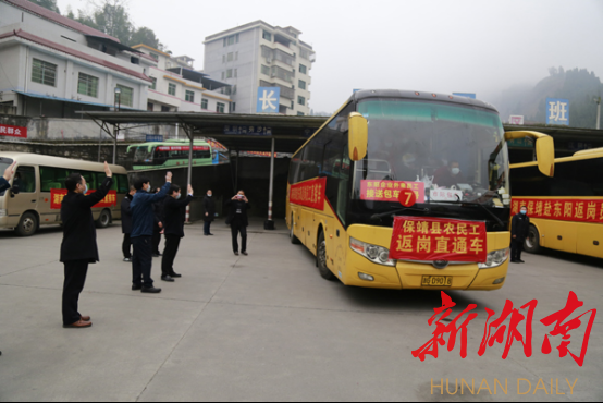 湖南日报·新湖南客户端2月24日讯(特约记者 田丽)2月23日上午九点,湘西土家族苗族自治州保靖县和浙江东阳市两地政府通力合作,开通“返岗直通车”绿色通道,为企业和返岗务工人员展开第三次长达1268公里的“牵线搭桥”,帮助230名农民工(其中建档立卡贫困户67人)成功踏上了返岗复工之路。