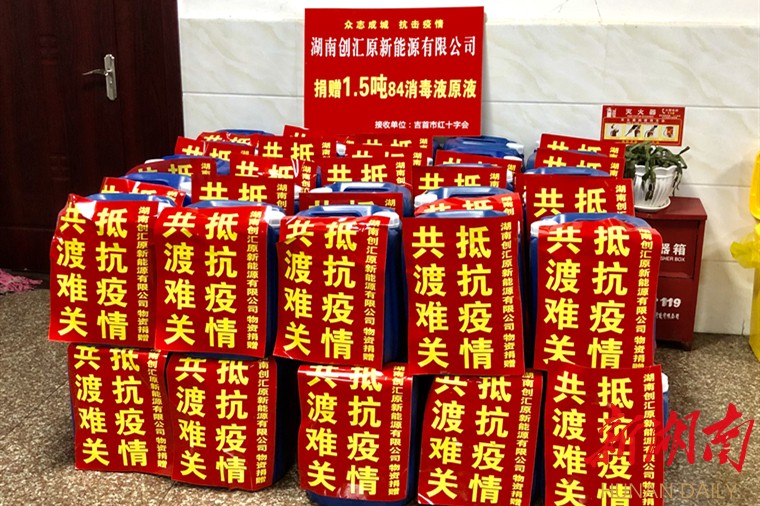“84消毒液现在可是紧俏东西,我们也是费了不少劲才弄到1.5吨,希望能对现在的情况有所帮助。”疫情无情,人间有爱,吉首经开区爱心企业、湖南创汇原新能源有限公司总经理向建告诉记者,疫情就是命令,当了解情况后,就与相关生产企业取得了联系,直到今日才购买到,便立即送到了吉首市。