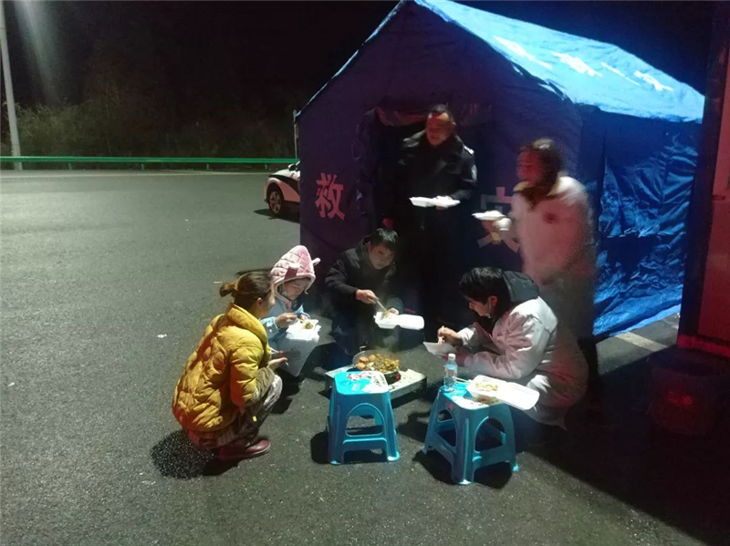 摆好桌子、消毒液、体温检测仪和登记本,还未来得及等帐篷到来,彭刚等人就马上开始工作。他们及时拦下从高速路口下来的每一辆车,进行疫情防控宣传,询问出发地和目的地,进行体温检测和记录,对涉及武汉的车辆及人员进行劝返。他们忙得顾不上吃饭,饿了就泡一桶方便面,渴了就喝一口矿泉水,冷了就烤一下炭火。