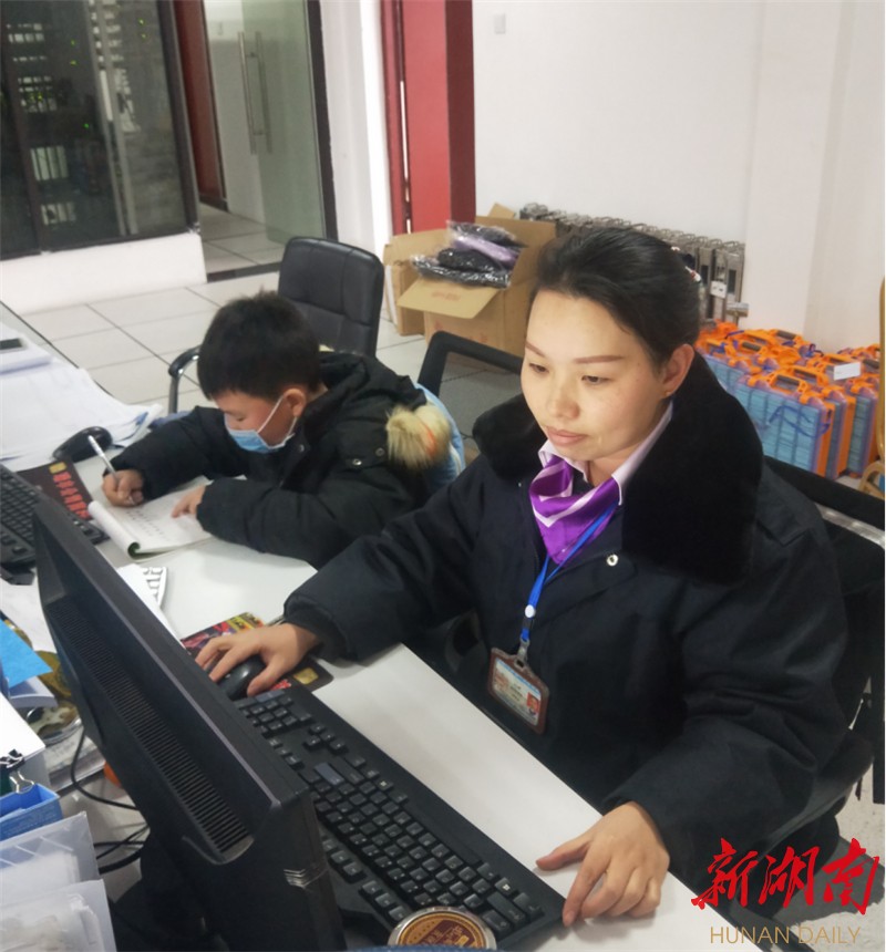 妻子方云琳,在高速收费站监控稽查室观察现场,儿子在一旁学习