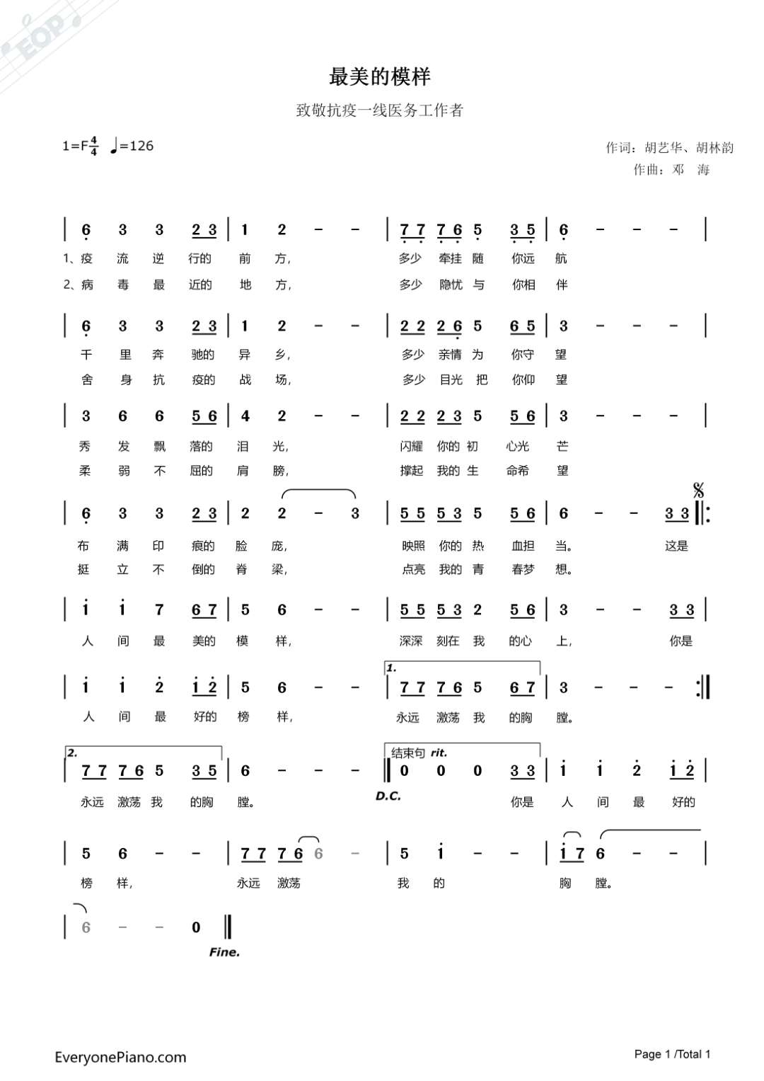 近日,一首由武汉音乐学院马克思主义学院、湖南师范大学思想政治教育研究所、深圳市海声文化传播有限公司、衡阳师范学院校友办、延安市音乐家协会等多家单位合力完成的抗疫原创歌曲《最美的模样》正式推出,歌曲以抗疫一线医务工作者的忙碌身影和奋斗姿态为音乐意象,展现医务工作者不惧生死、日夜奋战的感人场景,并表达了广大青年大学生向抗疫一线医务工作者学习和致敬、为打赢疫情防控阻击战奉献青春力量的共同心声。