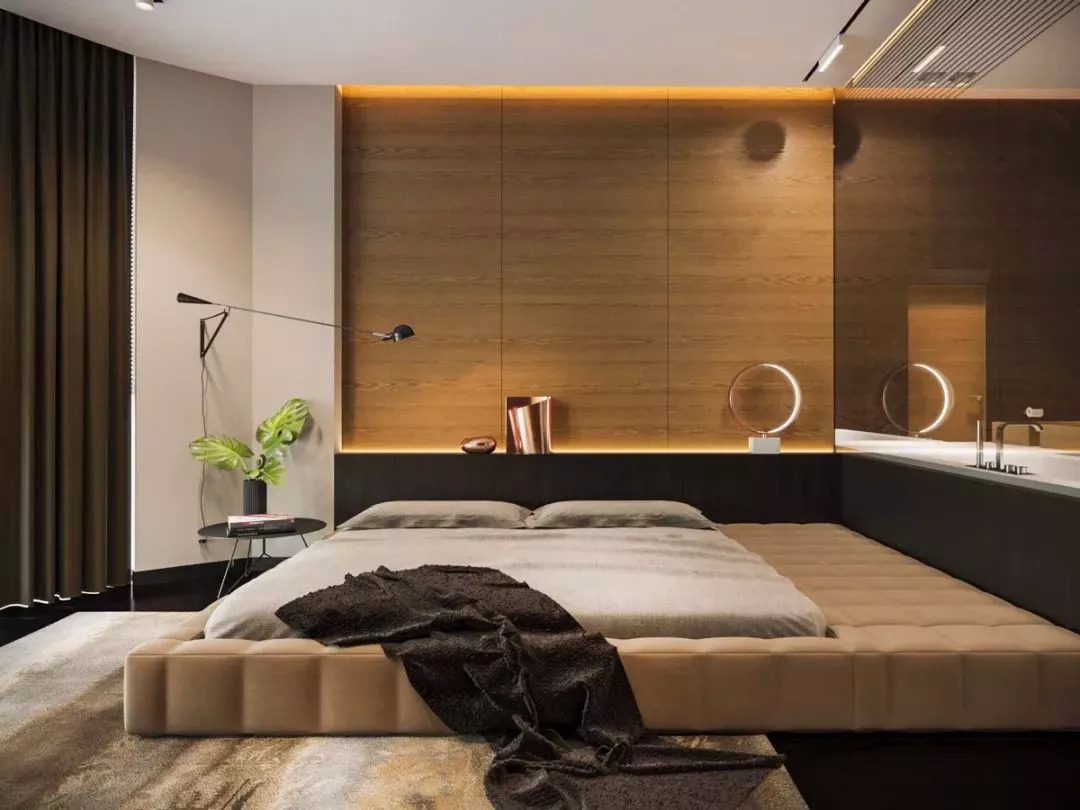 它的性质相当于整体定制的,包括房门、衣柜、床、地板、窗帘等在内的一切元素,都要遵循统一原则,与整体格调和谐相融。
